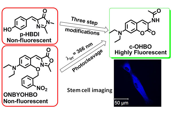 "Chemical tweaking of a non-fluorescent GFP chromophore to a highly fluorescent coumarinic fluorophore: application towards photo-uncaging and stem cell imaging",