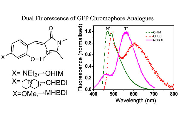 "Dual Fluorescence in GFP Chromophore Analogues: Chemical Modulation of Charge Transfer and Proton Transfer Bands",